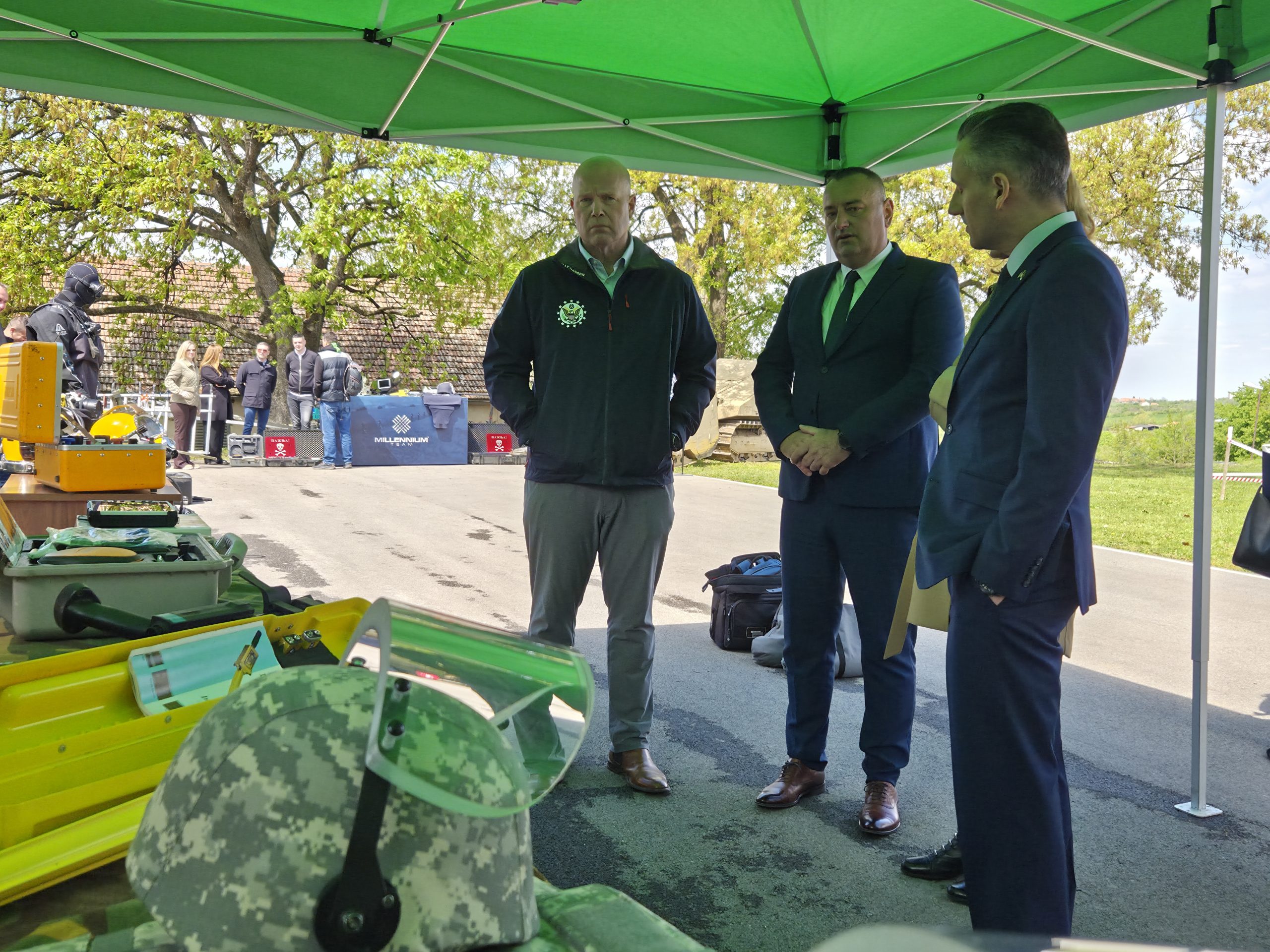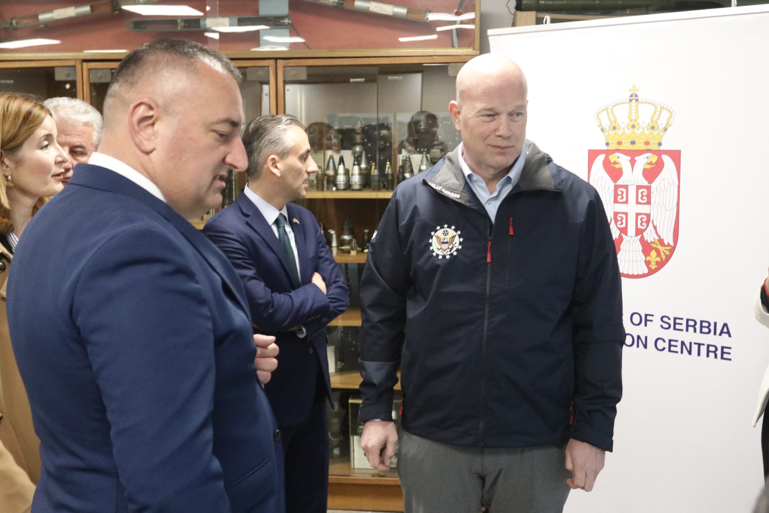 Том приликом, Њ. Е. Метју Витакер састао се са директором Центра за разминирање г. Бојаном Гламочлијом, изаслаником Владе РС, саветником председника Владе Србије за безбедност г. Милорадом Вељовићем и отправником послова у Амбасади САД-а у Београду г. Александром Титолом.
